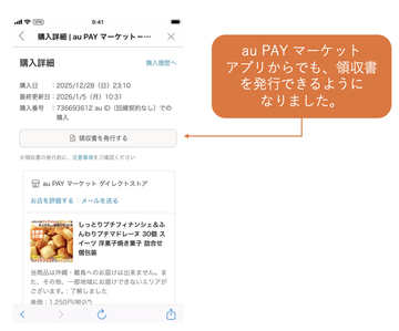 au PAY マーケットアプリからも電子領収書のダウンロードができるようになりました。